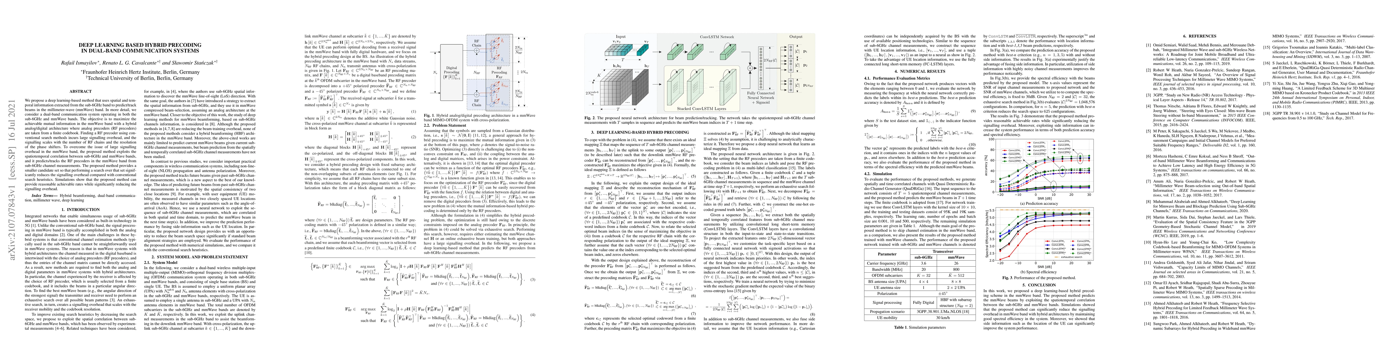 We propose a deep learning-based method that uses spatial and temporal information extracted from the sub-6GHz band to predict/track beams in the millimeter-wave (mmWave) band. In more detail, we consider a dual-band communication system operating in both the sub-6GHz and mmWave bands. The objective is to maximize the achievable mutual information in the mmWave band with a hybrid analog/digital architecture where analog precoders (RF precoders) are taken from a finite codebook. Finding a RF precoder using conventional search methods incurs large signalling overhead, and the signalling scales with the number of RF chains and the resolution of the phase shifters. To overcome the issue of large signalling overhead in the mmWave band, the proposed method exploits the spatiotemporal correlation between sub-6GHz and mmWave bands, and it predicts/tracks the RF precoders in the mmWave band from sub-6GHz channel measurements. The proposed method provides a smaller candidate set so that performing a search over that set significantly reduces the signalling overhead compared with conventional search heuristics. Simulations show that the proposed method can provide reasonable achievable rates while significantly reducing the signalling overhead.
