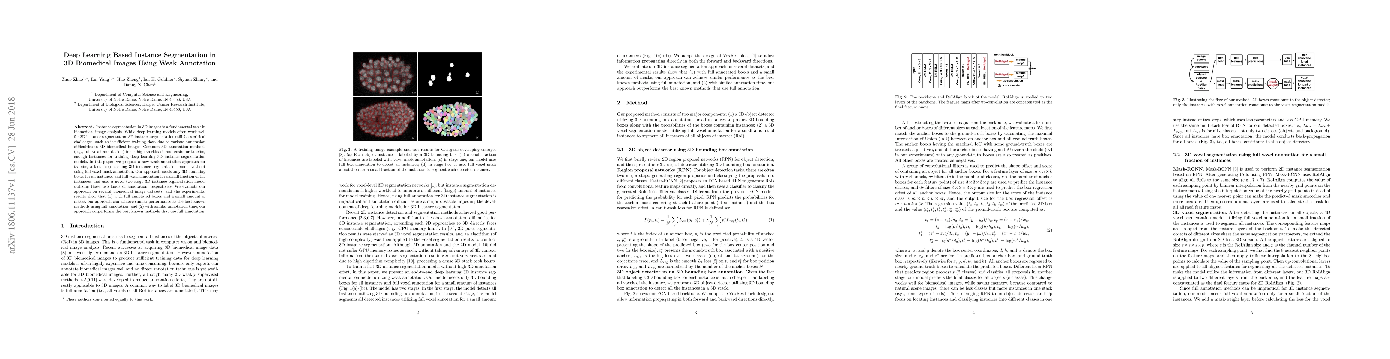 This paper proposes a novel weak annotation method for training deep learning models to perform 3D instance segmentation in biomedical images, requiring only 3D bounding boxes and a small fraction of full voxel masks, achieving performance comparable to methods using full annotations while significantly reducing annotation effort.