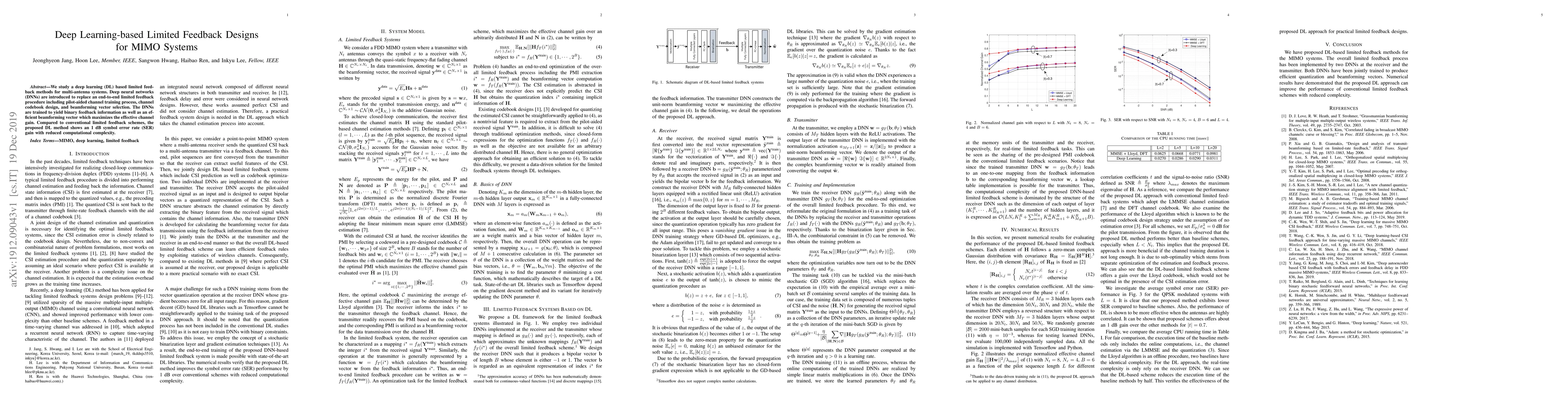 A new deep learning-based method improves limited feedback designs for multi-antenna systems, achieving a 1 dB symbol error rate gain with reduced complexity.