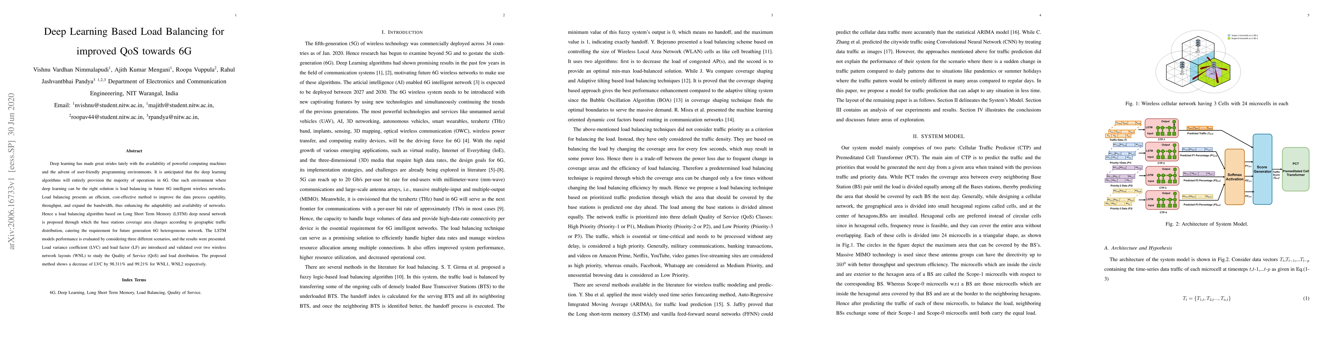 This paper proposes a deep learning-based load balancing algorithm using Long Short Term Memory (LSTM) networks to enhance Quality of Service (QoS) in future 6G networks. The LSTM model dynamically adjusts base station coverage based on geographic traffic distribution, significantly reducing load variance and improving network efficiency.