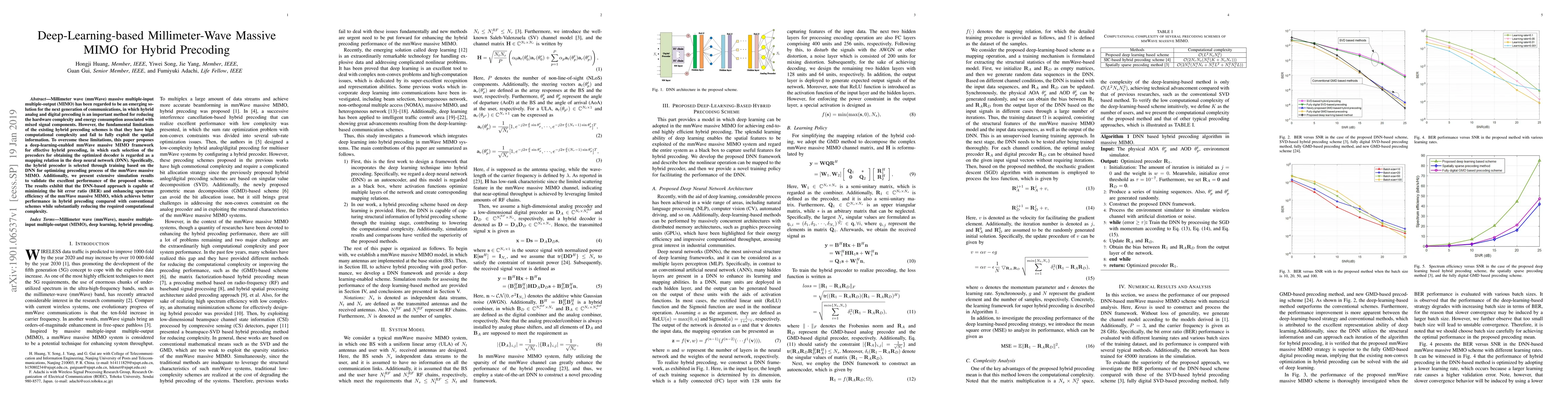 This paper proposes a deep-learning-based framework for hybrid precoding in mmWave massive MIMO to reduce computational complexity and enhance performance. The deep neural network optimizes the selection of precoders, achieving better bit error ratio and spectrum efficiency while outperforming conventional methods.