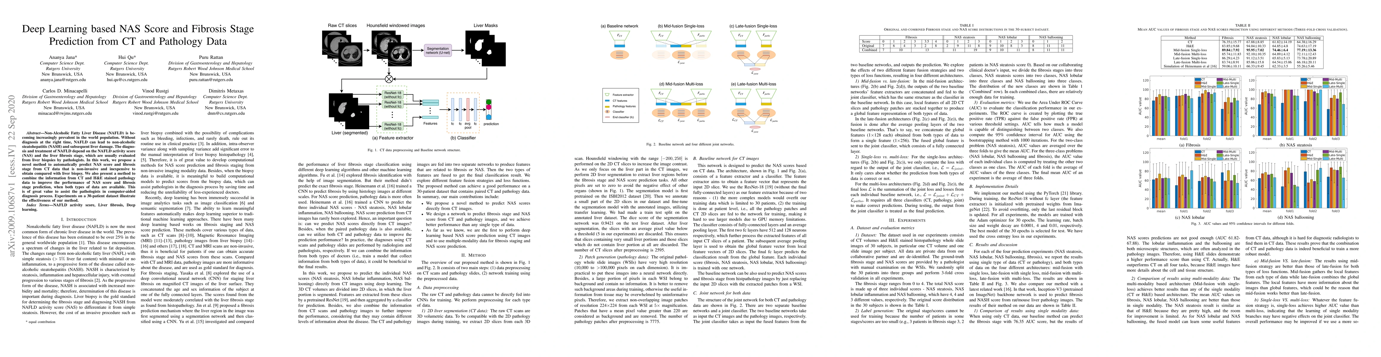 Non-Alcoholic Fatty Liver Disease (NAFLD) is becoming increasingly prevalent in the world population. Without diagnosis at the right time, NAFLD can lead to non-alcoholic steatohepatitis (NASH) and subsequent liver damage. The diagnosis and treatment of NAFLD depend on the NAFLD activity score (NAS) and the liver fibrosis stage, which are usually evaluated from liver biopsies by pathologists. In this work, we propose a novel method to automatically predict NAS score and fibrosis stage from CT data that is non-invasive and inexpensive to obtain compared with liver biopsy. We also present a method to combine the information from CT and H\&E stained pathology data to improve the performance of NAS score and fibrosis stage prediction, when both types of data are available. This is of great value to assist the pathologists in computer-aided diagnosis process. Experiments on a 30-patient dataset illustrate the effectiveness of our method.
