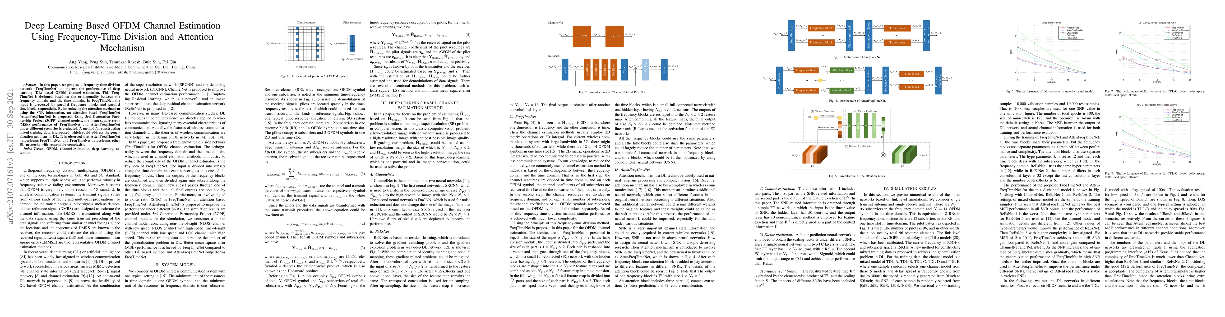 This paper introduces FreqTimeNet, a deep learning network for OFDM channel estimation that leverages frequency-time division and an attention mechanism. AttenFreqTimeNet, an enhanced version incorporating SNR-based attention, shows superior performance in MSE compared to FreqTimeNet and other DL networks, while addressing generalization issues through mixed training data construction.