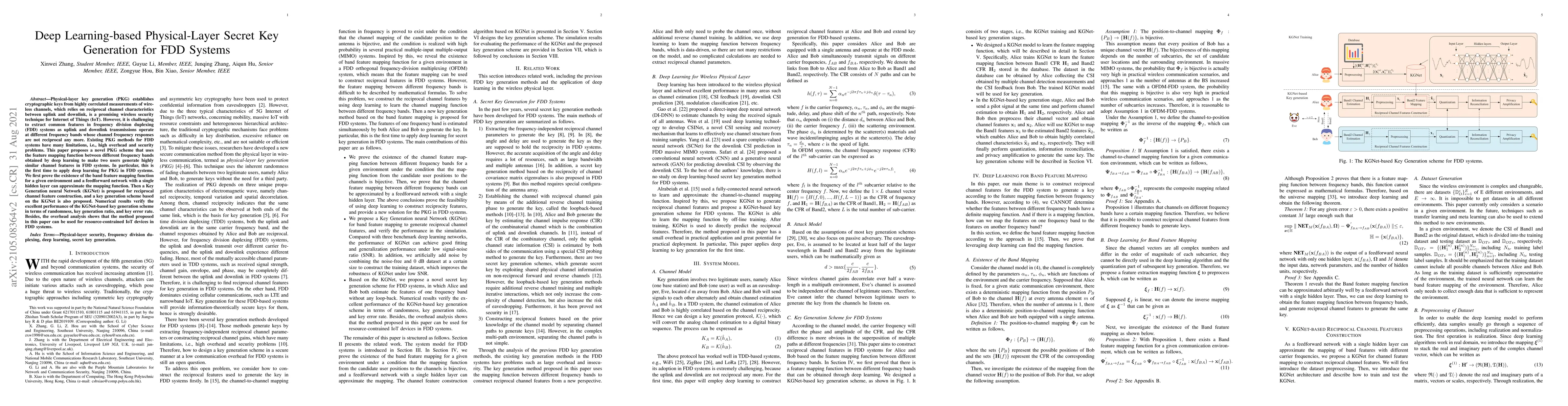 This paper proposes a novel deep learning-based physical-layer key generation scheme for frequency division duplexing (FDD) systems, addressing the challenge of non-reciprocal channel characteristics. The proposed Key Generation neural Network (KGNet) leverages deep learning to map features across different frequency bands, enabling secure key generation with low overhead suitable for IoT devices.