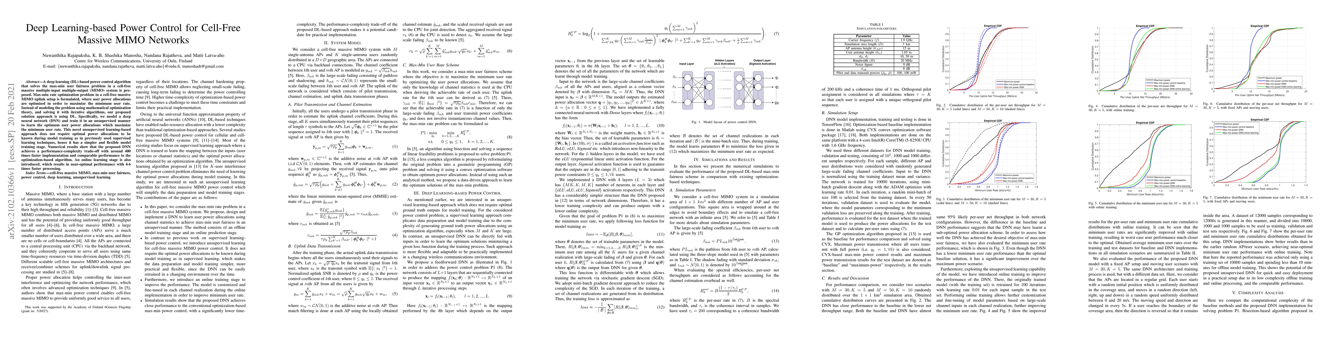 This paper proposes a deep learning-based power control algorithm for cell-free massive MIMO networks to maximize the minimum user rate, using an unsupervised deep neural network trained without prior knowledge of optimal power allocations. The approach achieves a significant performance-complexity trade-off, offering faster implementation and comparable performance to traditional optimization-based methods.