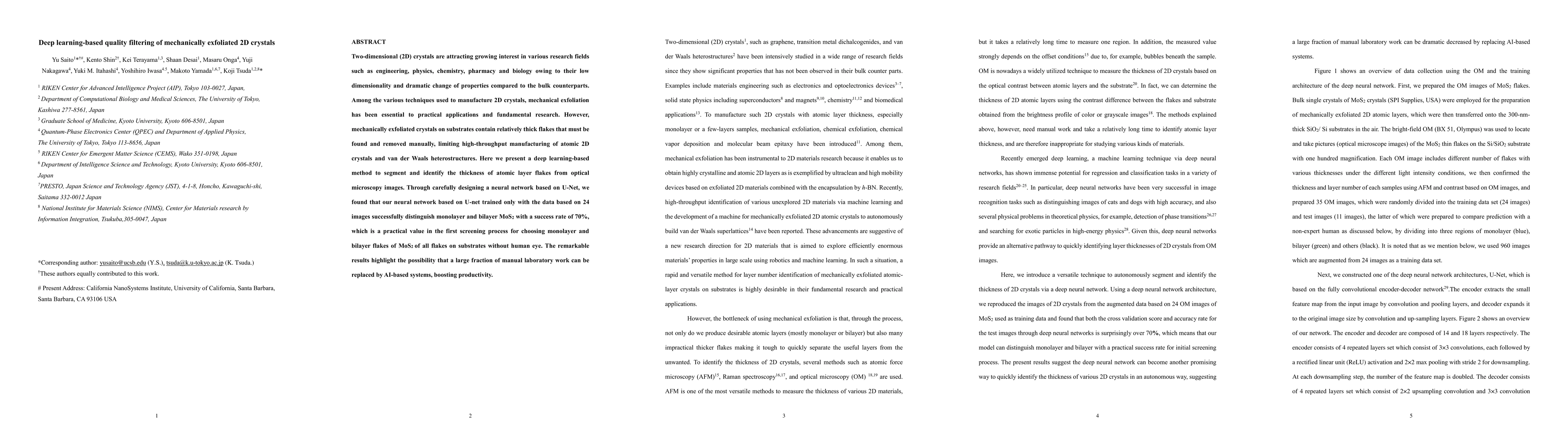 A deep learning method uses U-Net neural networks to automatically identify monolayer and bilayer MoS2 flakes from optical microscopy images with a 70% success rate, reducing manual labor in high-throughput manufacturing.