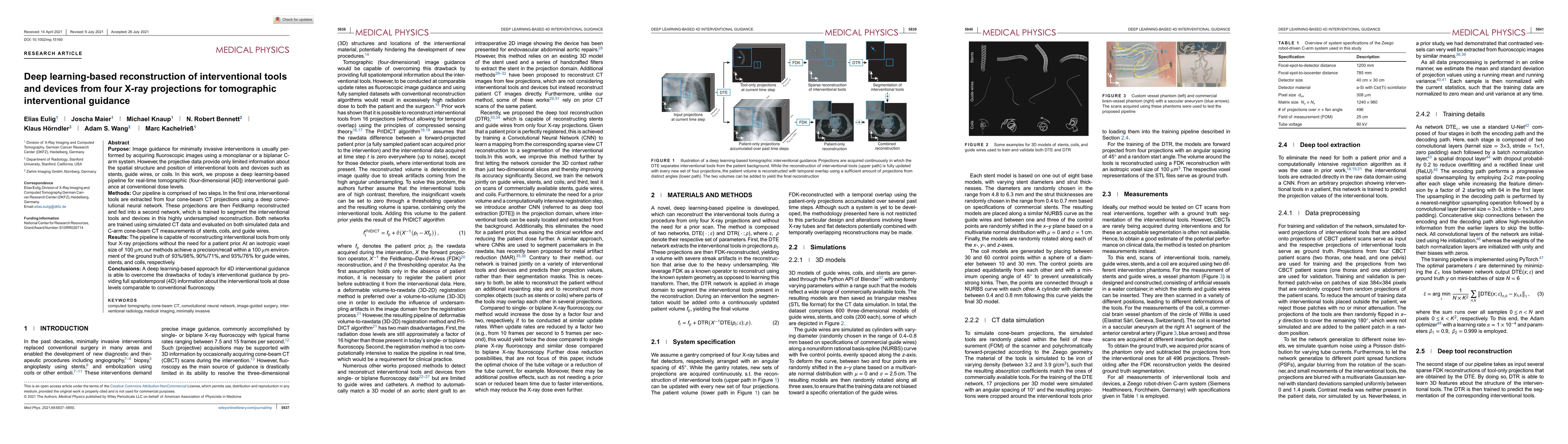 This paper proposes a deep learning-based method to reconstruct interventional tools from four X-ray projections using CNNs, enabling real-time tomographic guidance with minimal patient radiation. The approach accurately reconstructs tools without requiring patient priors, potentially enhancing minimally invasive procedures.