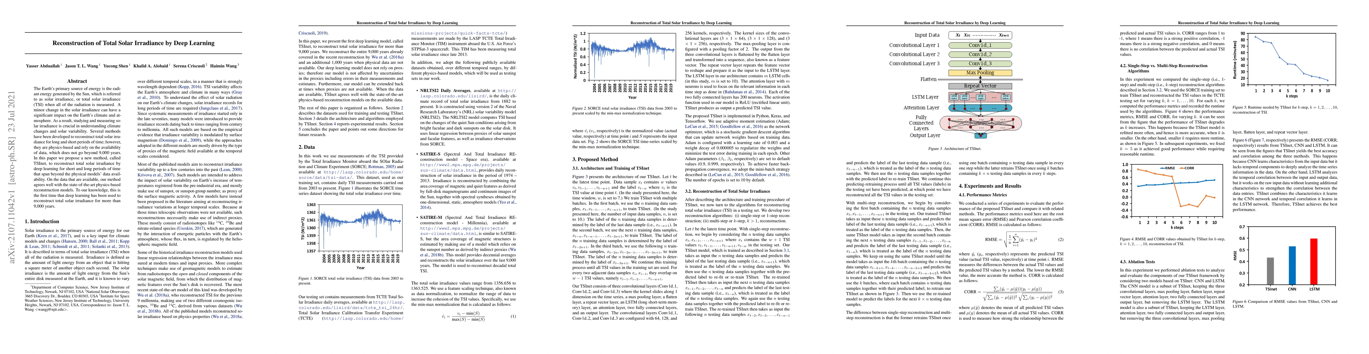 This paper introduces TSInet, a deep learning-based method for reconstructing total solar irradiance (TSI) over long periods exceeding 9,000 years, where traditional physics-based models cannot extend. The proposed method aligns well with current state-of-the-art models on available data.