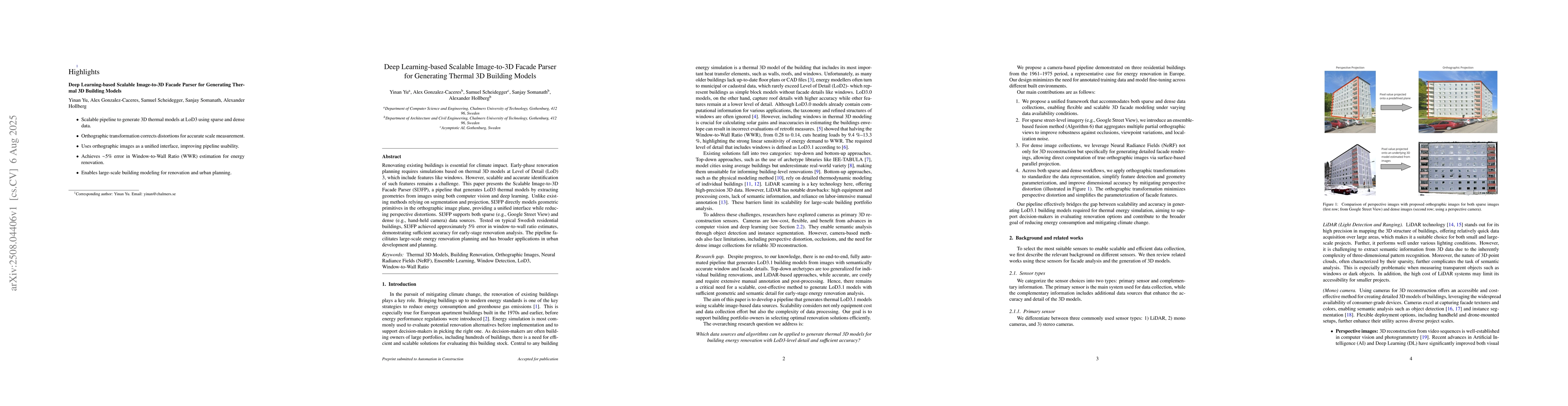 Renovating existing buildings is essential for climate impact. Early-phase renovation planning requires simulations based on thermal 3D models at Level of Detail (LoD) 3, which include features like windows. However, scalable and accurate identification of such features remains a challenge. This paper presents the Scalable Image-to-3D Facade Parser (SI3FP), a pipeline that generates LoD3 thermal models by extracting geometries from images using both computer vision and deep learning. Unlike existing methods relying on segmentation and projection, SI3FP directly models geometric primitives in the orthographic image plane, providing a unified interface while reducing perspective distortions. SI3FP supports both sparse (e.g., Google Street View) and dense (e.g., hand-held camera) data sources. Tested on typical Swedish residential buildings, SI3FP achieved approximately 5% error in window-to-wall ratio estimates, demonstrating sufficient accuracy for early-stage renovation analysis. The pipeline facilitates large-scale energy renovation planning and has broader applications in urban development and planning.