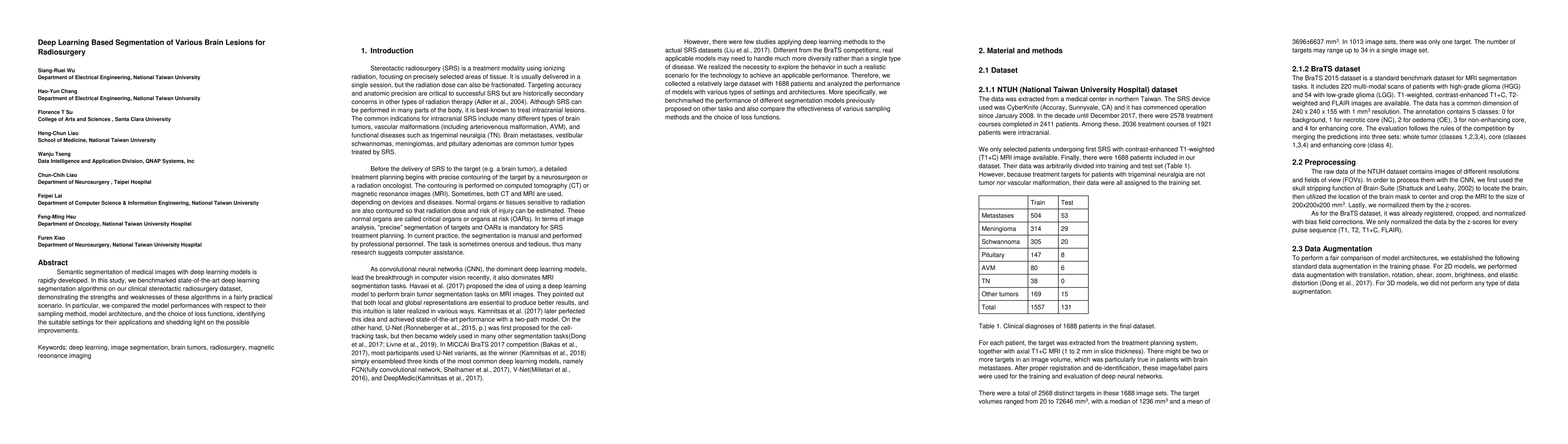 This study benchmarks advanced deep learning segmentation algorithms on a clinical dataset for radiosurgery, evaluating their performance based on sampling methods, architectures, and loss functions to identify optimal settings for practical applications and suggest avenues for future improvements.
