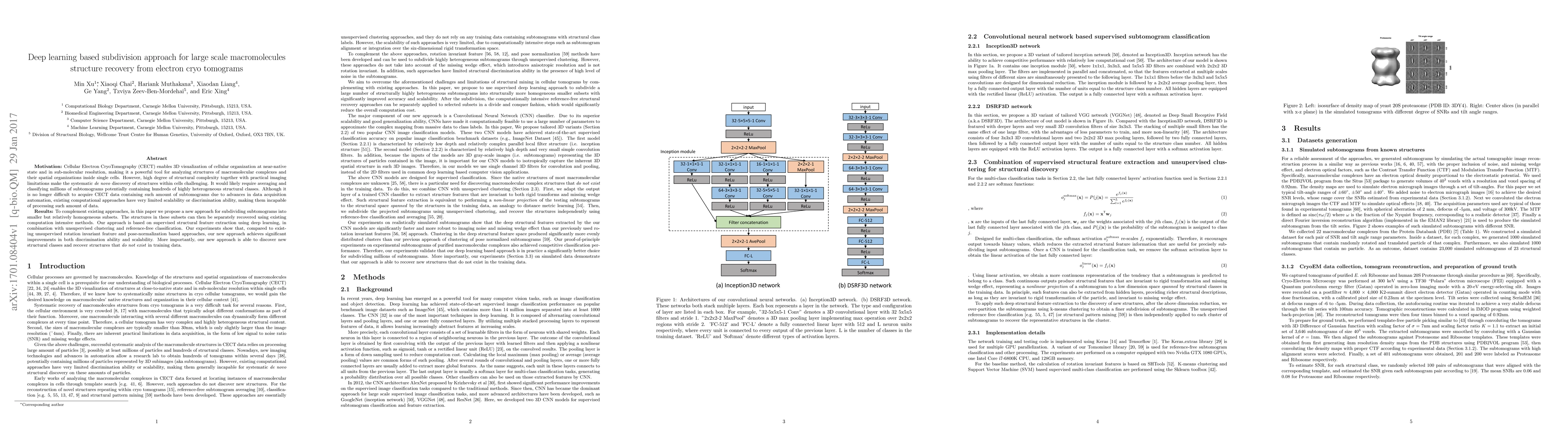 This paper proposes a deep learning-based subdivision approach to enhance the recovery of large-scale macromolecular structures from electron cryo tomograms. The method uses supervised deep learning to extract structural features, followed by unsupervised clustering, enabling the discovery of new structural classes and improved scalability.