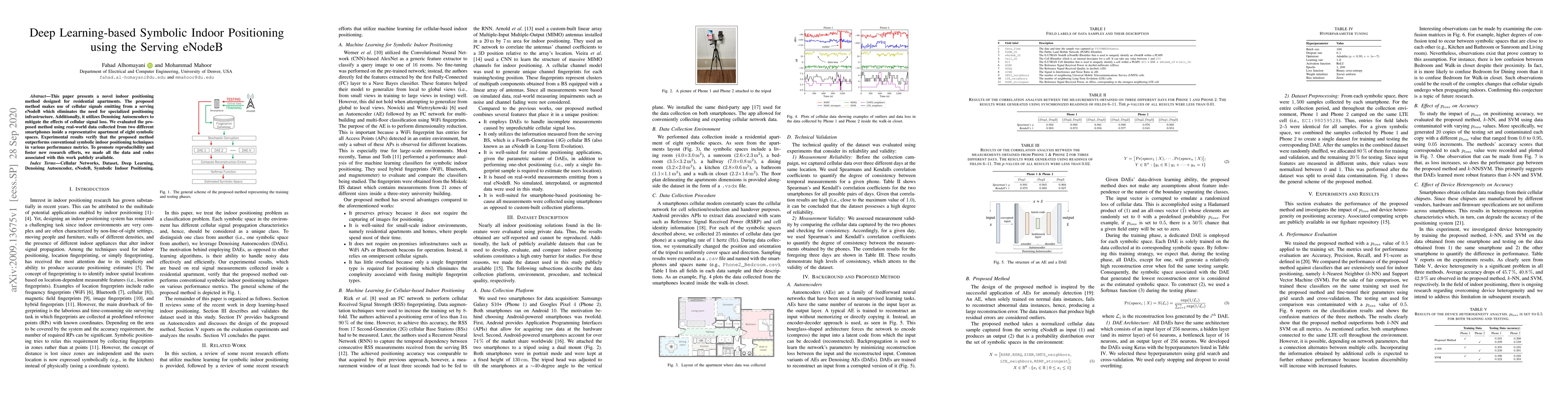 This paper presents a novel indoor positioning method designed for residential apartments. The proposed method makes use of cellular signals emitting from a serving eNodeB which eliminates the need for specialized positioning infrastructure. Additionally, it utilizes Denoising Autoencoders to mitigate the effects of cellular signal loss. We evaluated the proposed method using real-world data collected from two different smartphones inside a representative apartment of eight symbolic spaces. Experimental results verify that the proposed method outperforms conventional symbolic indoor positioning techniques in various performance metrics. To promote reproducibility and foster new research efforts, we made all the data and codes associated with this work publicly available.
