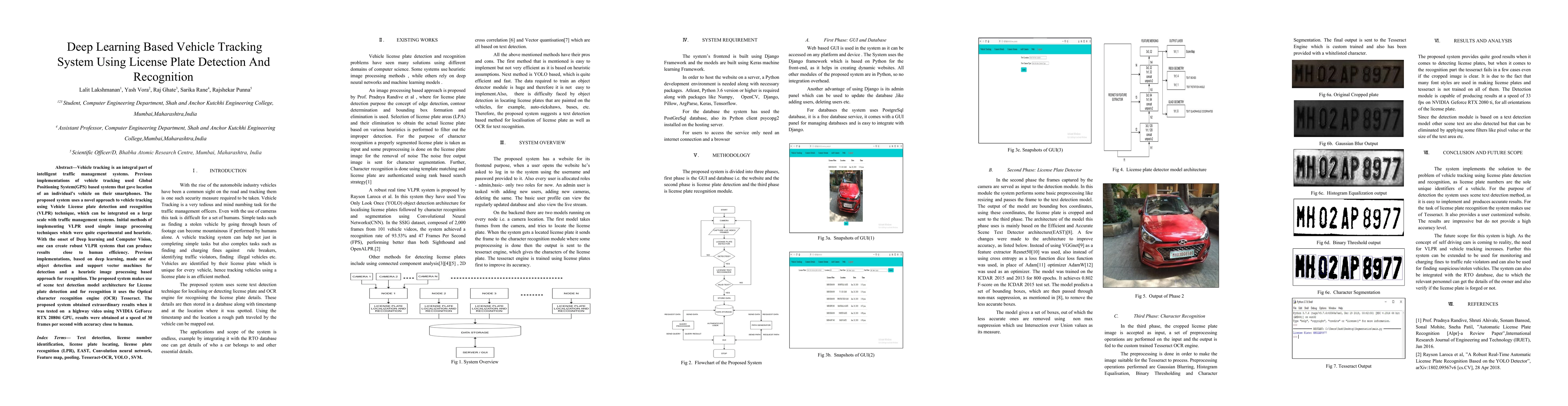 This paper proposes a deep learning-based vehicle tracking system using license plate detection and recognition (VLPR) for intelligent traffic management. It employs a scene text detection model for license plate detection and Tesseract OCR for recognition, achieving high accuracy and speed comparable to human efficiency.