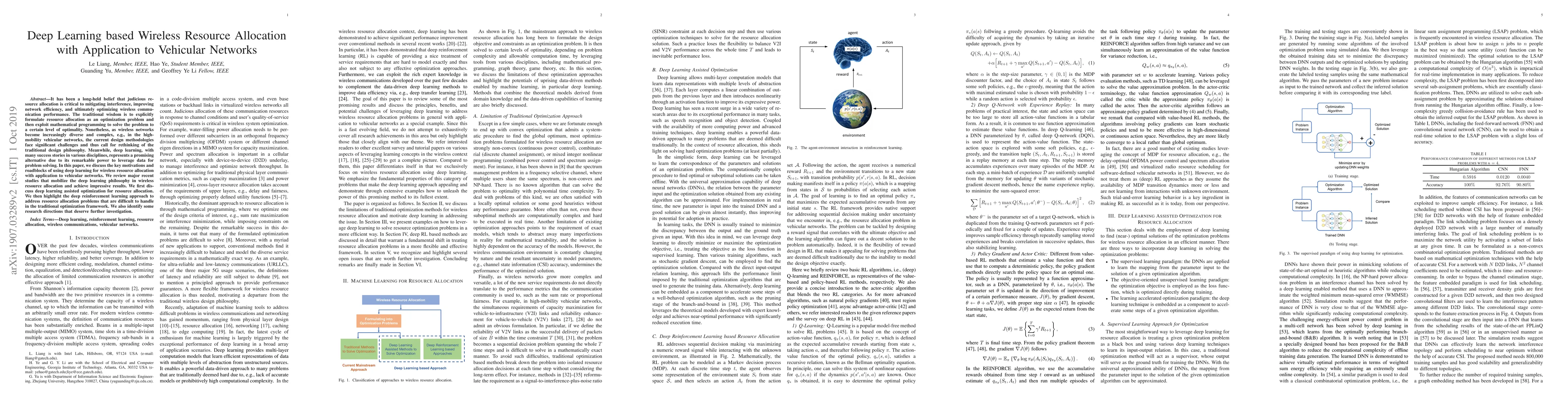 This paper explores the application of deep learning for wireless resource allocation in vehicular networks, addressing the challenges of traditional optimization methods. It reviews recent studies leveraging deep learning techniques, including deep reinforcement learning, to achieve better performance and identifies future research directions.