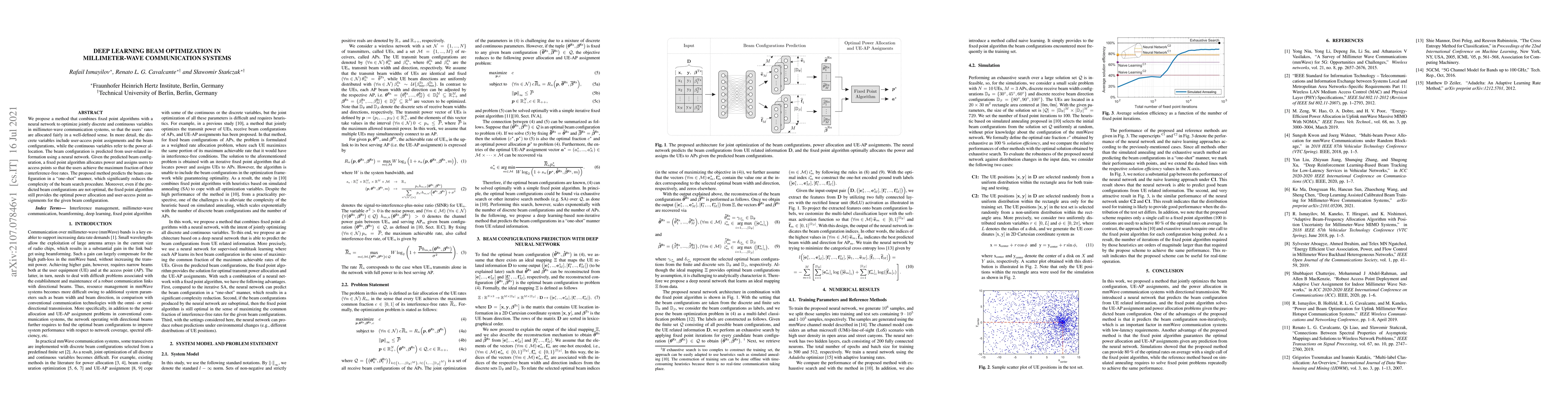 This paper proposes a deep learning method that integrates fixed point algorithms with neural networks to optimize both discrete and continuous variables in millimeter-wave communication systems, ensuring fair user rate allocation. The neural network predicts beam configurations, while a fixed point algorithm optimizes power allocation and user-access point assignments.