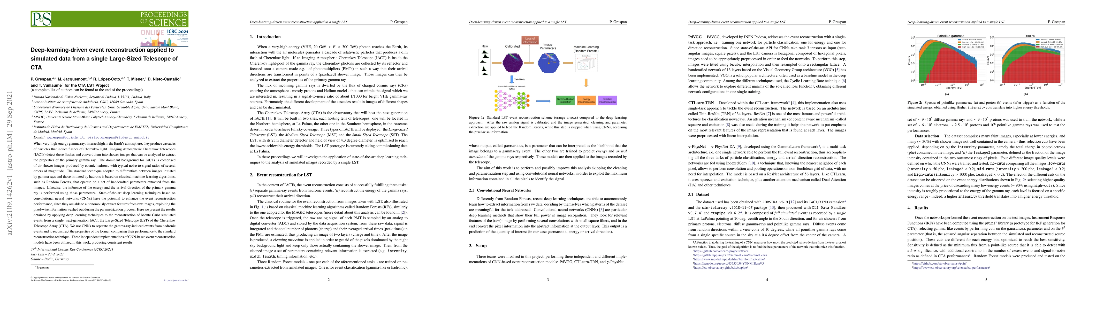 This paper explores the application of deep learning, specifically convolutional neural networks (CNNs), to reconstruct events from simulated data of a Large-Sized Telescope (LST) in the Cherenkov Telescope Array (CTA). The study demonstrates that CNNs outperform traditional machine learning methods in distinguishing gamma-ray events from background noise and reconstructing event properties.