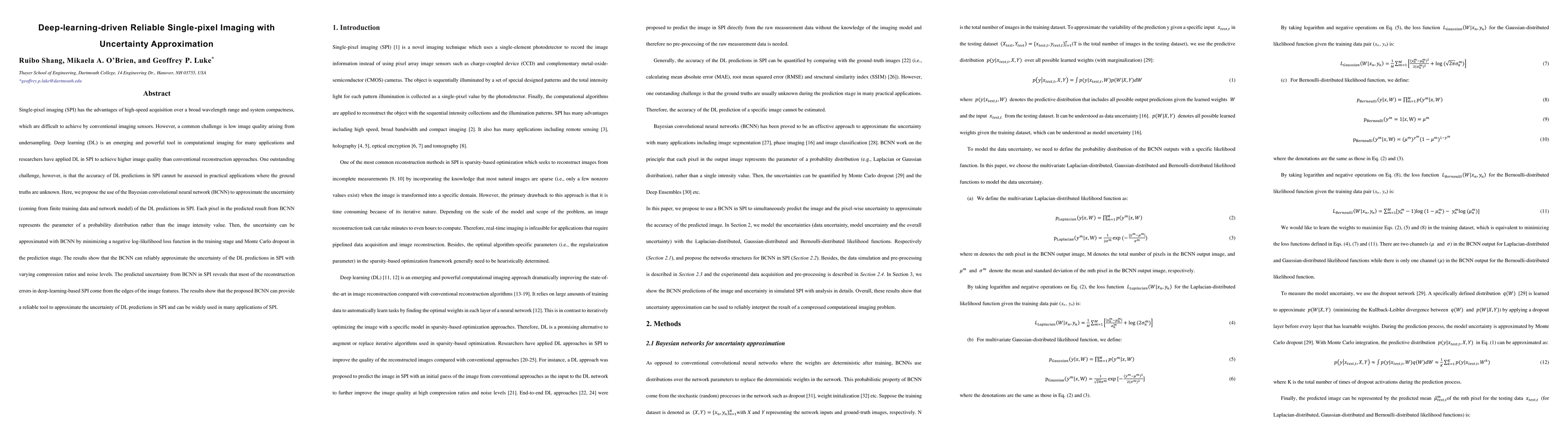 Researchers developed a method to estimate uncertainty in single-pixel imaging using Bayesian convolutional neural networks, which can improve the reliability of deep learning-based reconstructions.