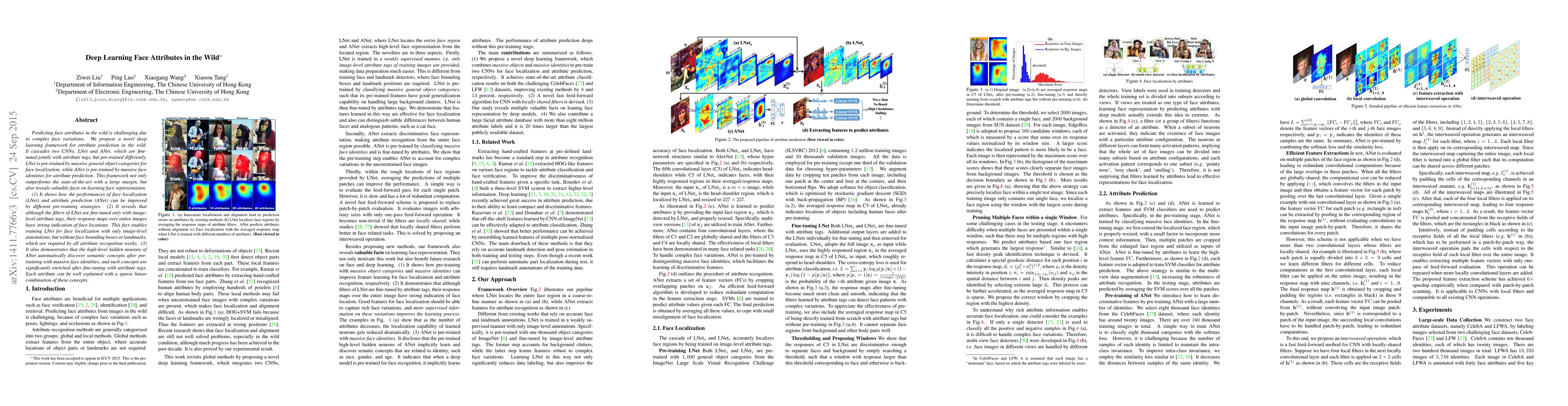 This paper presents a deep learning framework using two cascaded CNNs for predicting face attributes in complex scenarios. The framework, which combines LNet for face localization and ANet for attribute prediction, outperforms existing methods and reveals insights into effective pre-training strategies and the automatic discovery of semantic concepts in neural networks.