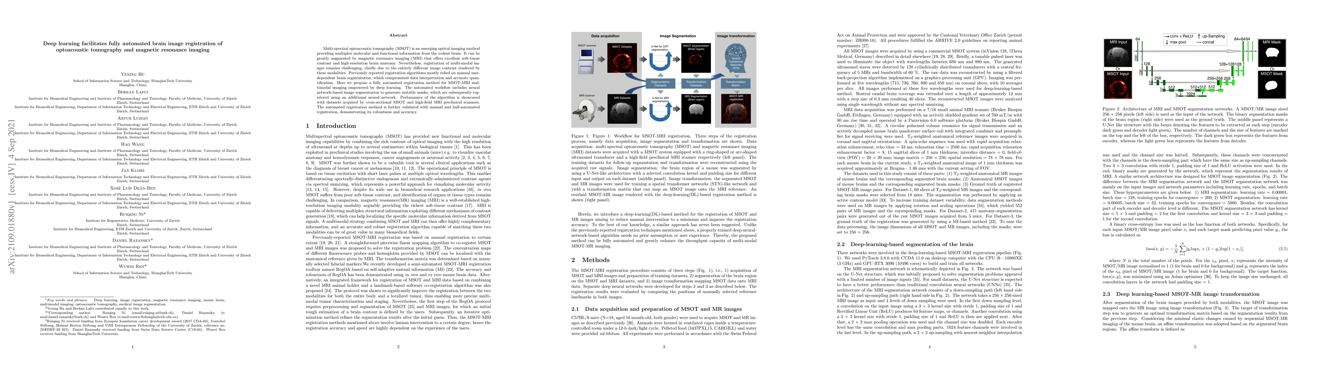 This paper proposes a deep learning-based method for fully automated registration of multi-spectral optoacoustic tomography (MSOT) and magnetic resonance imaging (MRI) brain images, eliminating the need for manual segmentation and improving accuracy. The method uses neural networks for both image segmentation and registration, validated against manual and semi-automated methods.