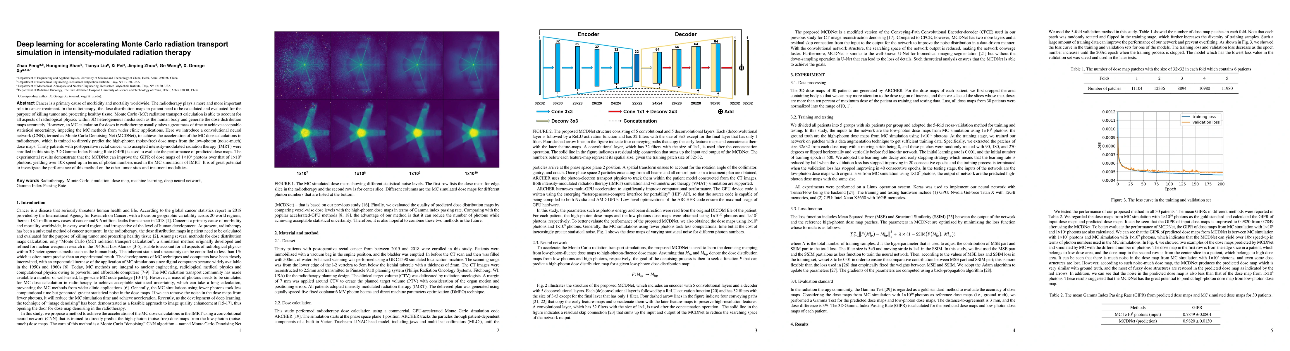 This paper proposes a convolutional neural network (CNN) called Monte Carlo Denoising Net (MCDNet) to accelerate Monte Carlo simulations for dose calculations in intensity-modulated radiation therapy. The MCDNet achieves a significant speed-up by predicting noise-free dose maps from noisy low-photon simulations, demonstrating a 10x improvement in efficiency with promising results for clinical applications.