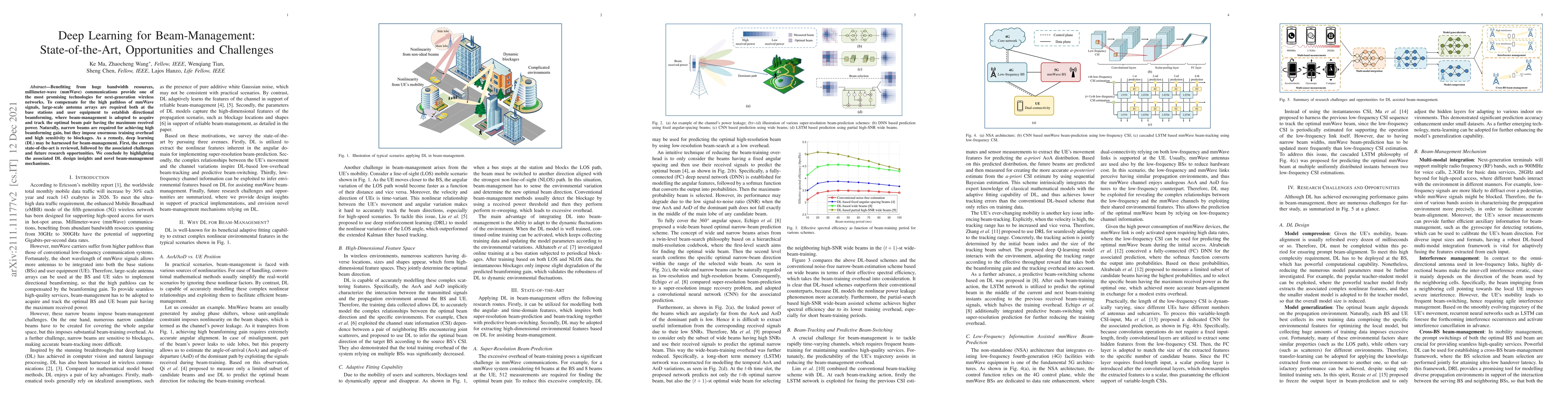 This paper reviews the state-of-the-art in deep learning applications for beam-management in millimeter-wave communications, addressing challenges like high pathloss and blockage sensitivity, and explores future research opportunities and novel mechanisms.