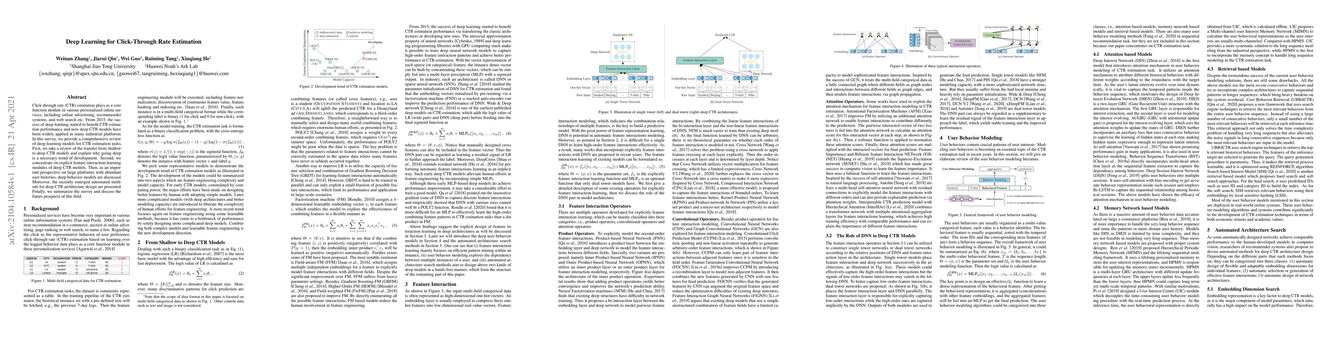 This survey reviews deep learning models for click-through rate estimation, highlighting their improved performance and applications in online services. It also discusses future prospects of this field, emphasizing the importance of explicit feature interaction learning modules and automated architecture design.