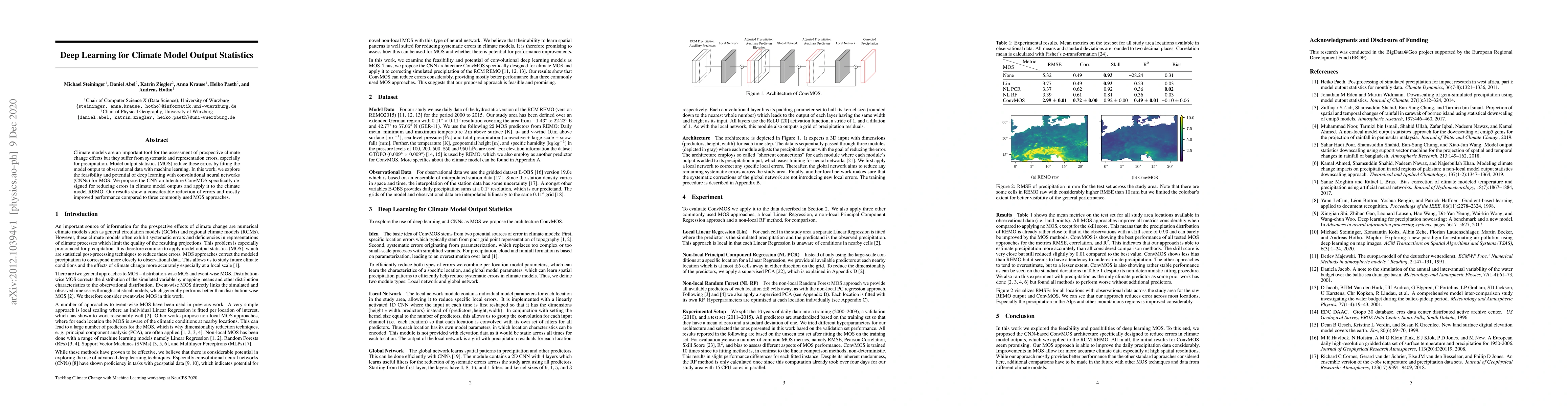 A new deep learning approach called ConvMOS significantly reduces errors in climate model outputs compared to traditional methods, improving performance in precipitation predictions.