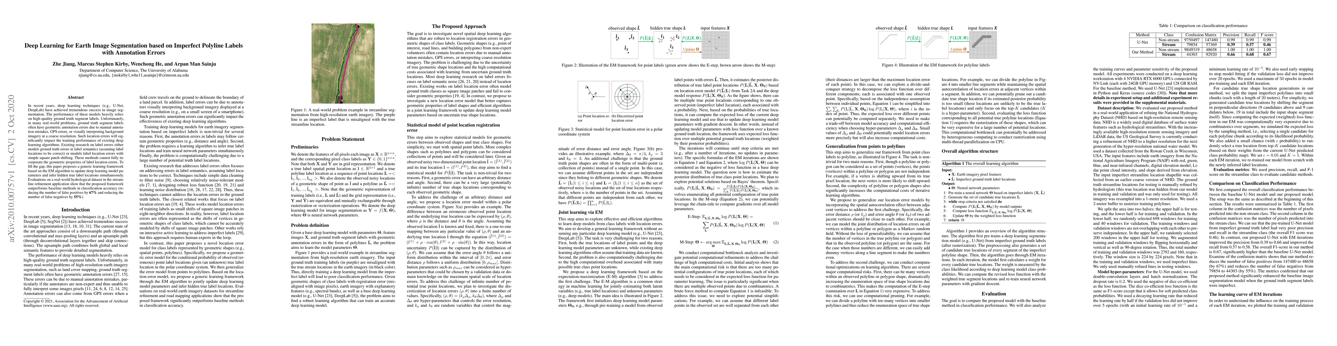 In recent years, deep learning techniques (e.g., U-Net, DeepLab) have achieved tremendous success in image segmentation. The performance of these models heavily relies on high-quality ground truth segment labels. Unfortunately, in many real-world problems, ground truth segment labels often have geometric annotation errors due to manual annotation mistakes, GPS errors, or visually interpreting background imagery at a coarse resolution. Such location errors will significantly impact the training performance of existing deep learning algorithms. Existing research on label errors either models ground truth errors in label semantics (assuming label locations to be correct) or models label location errors with simple square patch shifting. These methods cannot fully incorporate the geometric properties of label location errors. To fill the gap, this paper proposes a generic learning framework based on the EM algorithm to update deep learning model parameters and infer hidden true label locations simultaneously. Evaluations on a real-world hydrological dataset in the streamline refinement application show that the proposed framework outperforms baseline methods in classification accuracy (reducing the number of false positives by 67% and reducing the number of false negatives by 55%).