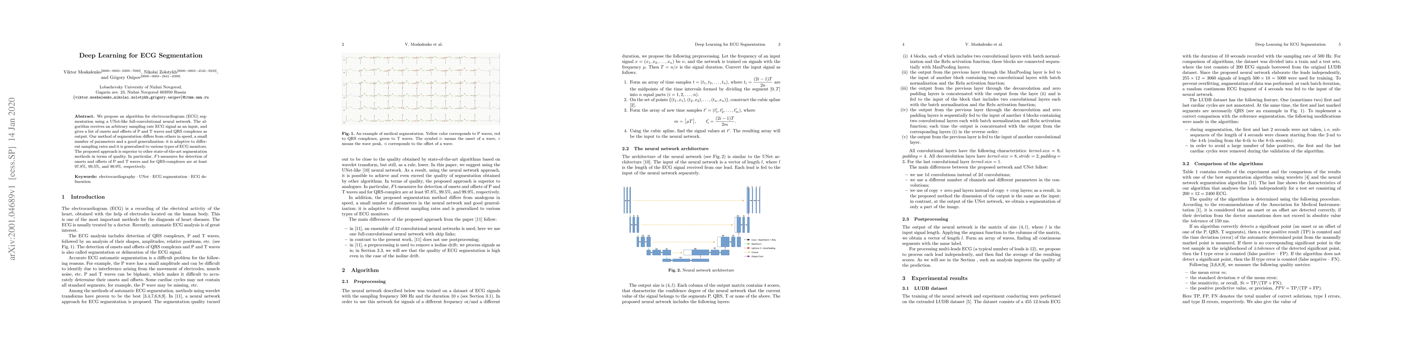 The research proposes an ECG segmentation algorithm using a UNet-like full-convolutional neural network. It processes arbitrary sampling rate ECG signals and outputs onsets and offsets of P and T waves and QRS complexes.