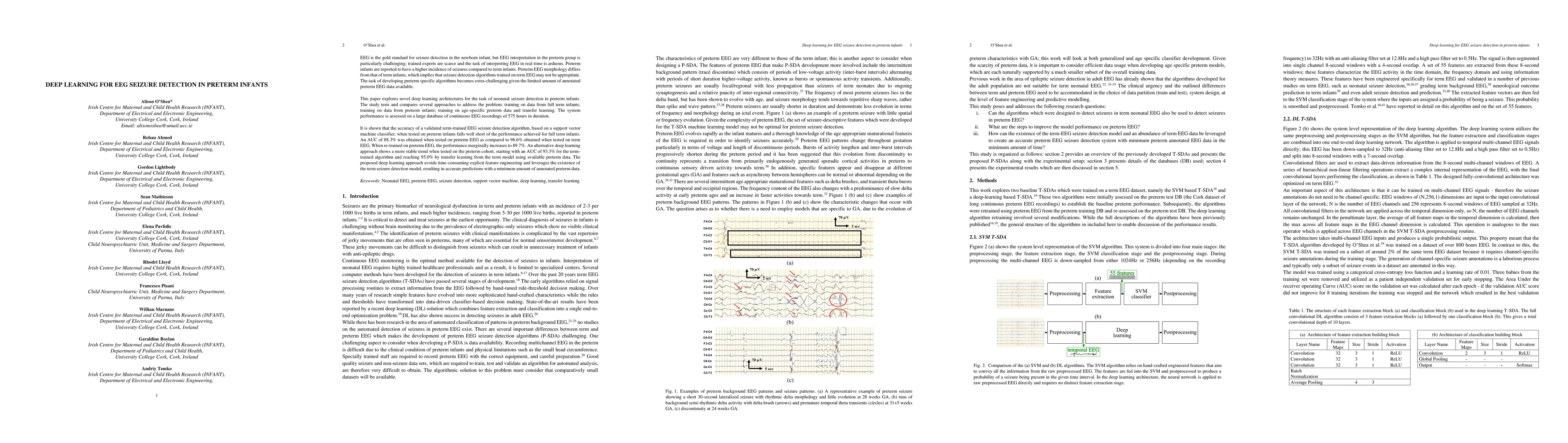 This paper investigates deep learning architectures for detecting seizures in preterm infants using EEG, finding that algorithms trained on term infant EEG data perform poorly on preterm EEG. A novel deep learning approach shows improved performance with transfer learning, achieving an AUC of 95.0% on preterm EEG data.