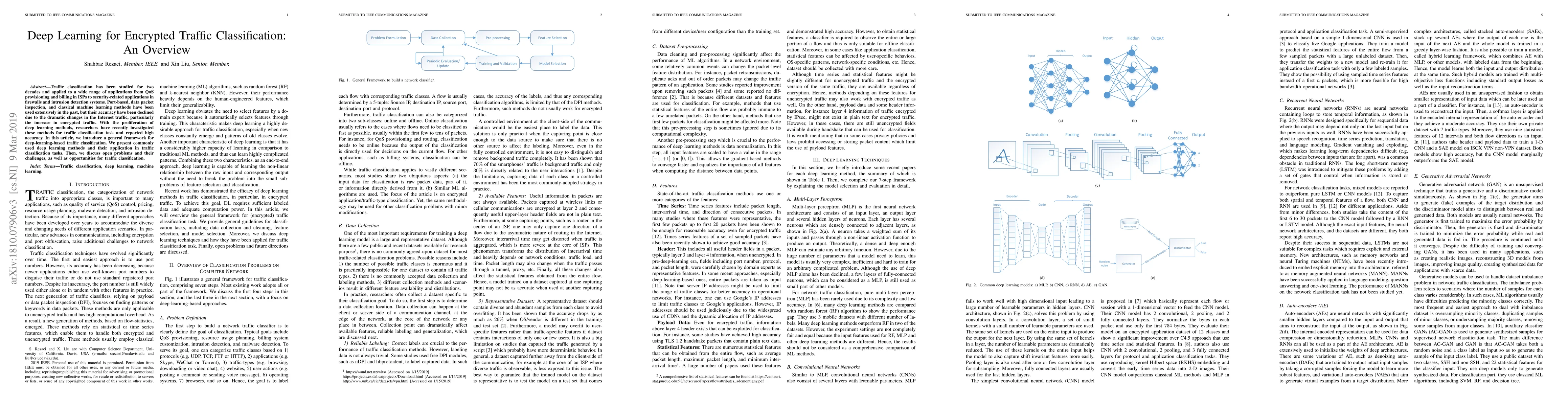 This paper reviews the application of deep learning methods for encrypted traffic classification, highlighting their high accuracy compared to traditional approaches. It outlines a general framework for these methods and discusses remaining challenges and future opportunities in the field.