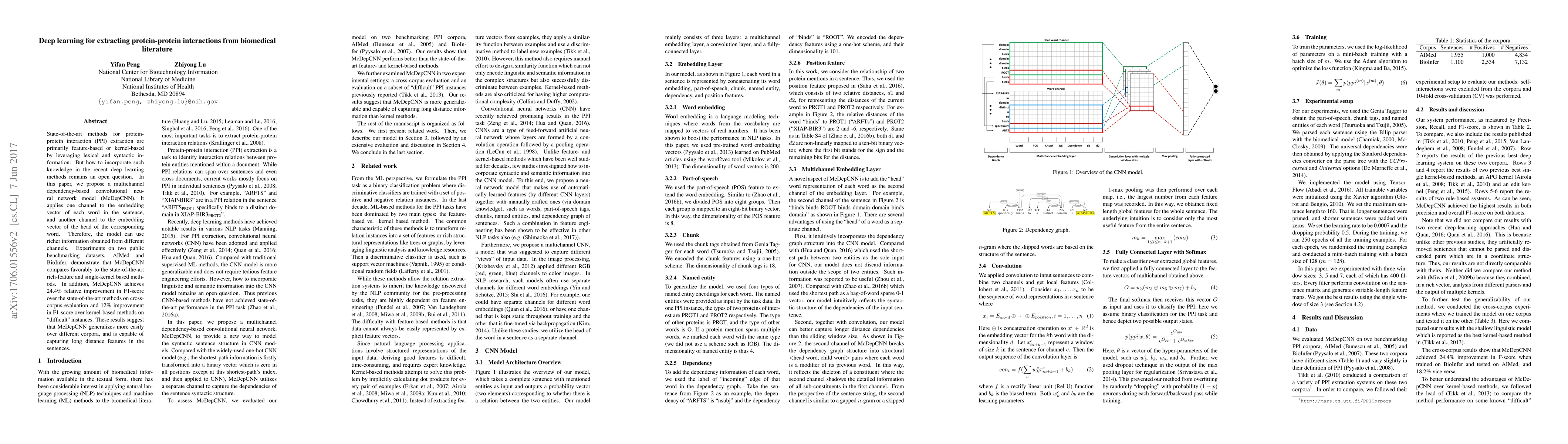 A new deep learning model, McDepCNN, improves protein-protein interaction extraction from biomedical literature by incorporating lexical and syntactic information. It achieves 24.4% relative improvement in F1-score over state-of-the-art methods.