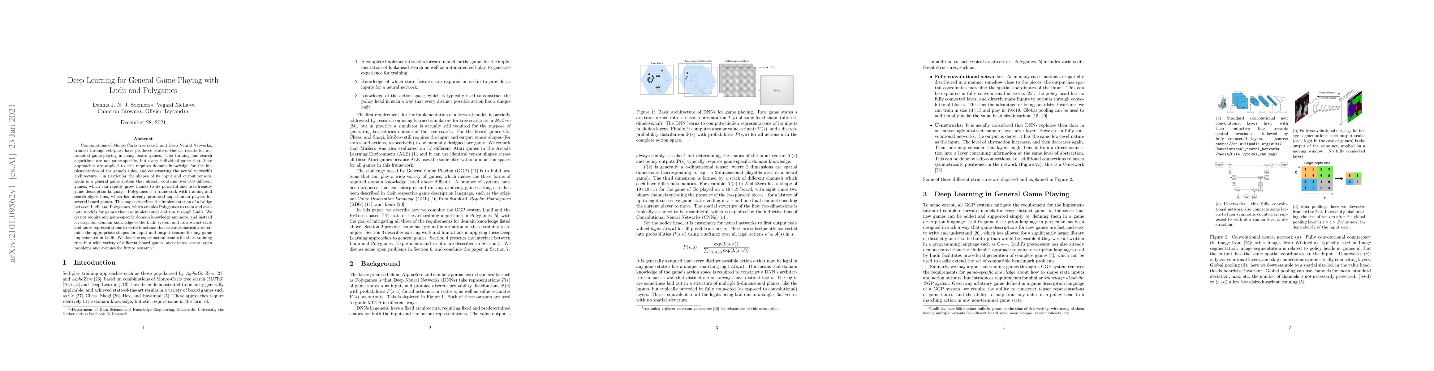 This paper integrates Ludii's general game system with Polygames' deep learning framework to enable automated game-playing without requiring game-specific domain knowledge. The bridge automates tensor shape determination for any game in Ludii, showcasing initial results across diverse board games.