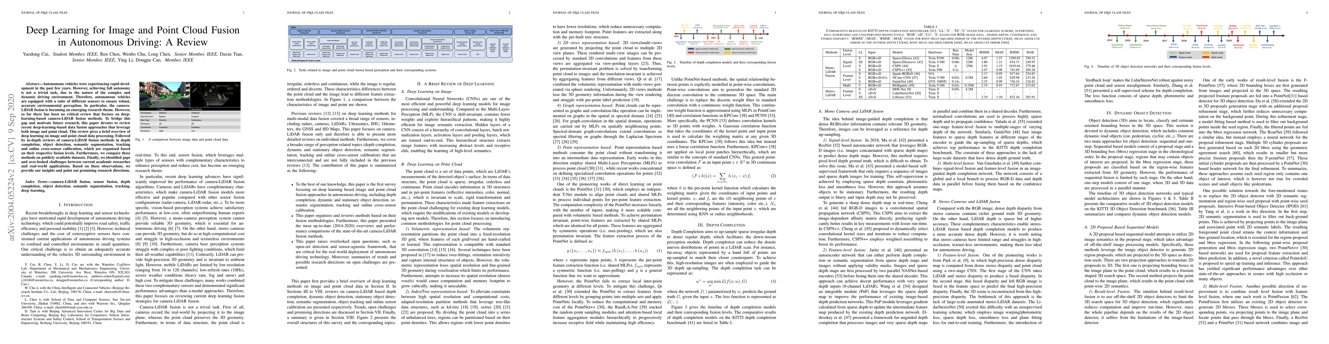 This paper reviews recent deep-learning-based methods for fusing camera and LiDAR data in autonomous driving, focusing on applications in depth completion, object detection, semantic segmentation, tracking, and calibration. It identifies gaps between current research and real-world applications and suggests promising future research directions.