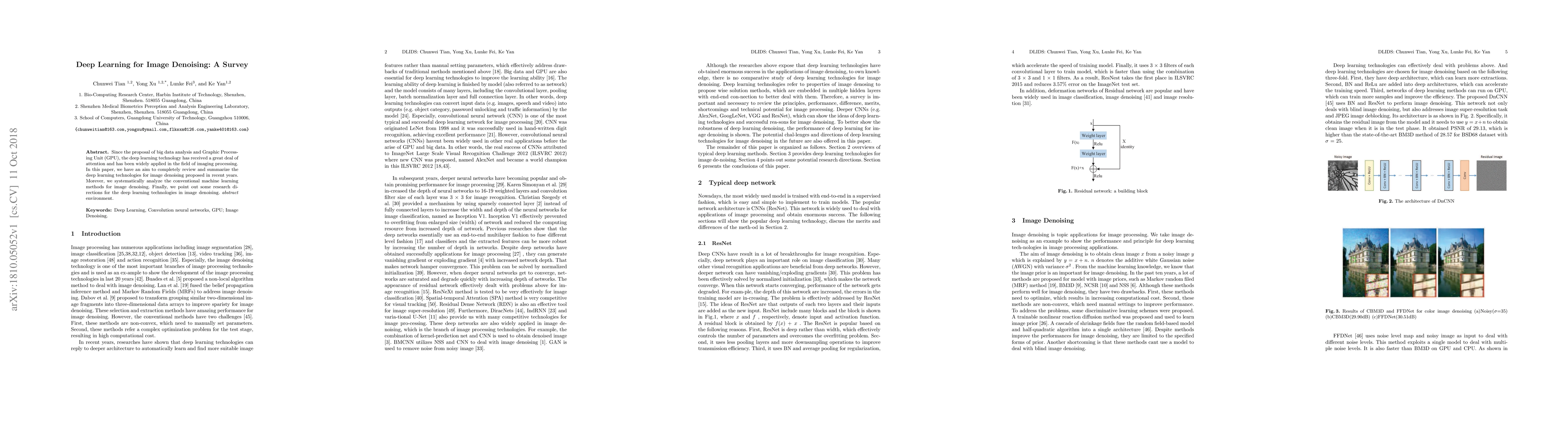 Since the proposal of big data analysis and Graphic Processing Unit (GPU), the deep learning technology has received a great deal of attention and has been widely applied in the field of imaging processing. In this paper, we have an aim to completely review and summarize the deep learning technologies for image denoising proposed in recent years. Morever, we systematically analyze the conventional machine learning methods for image denoising. Finally, we point out some research directions for the deep learning technologies in image denoising.