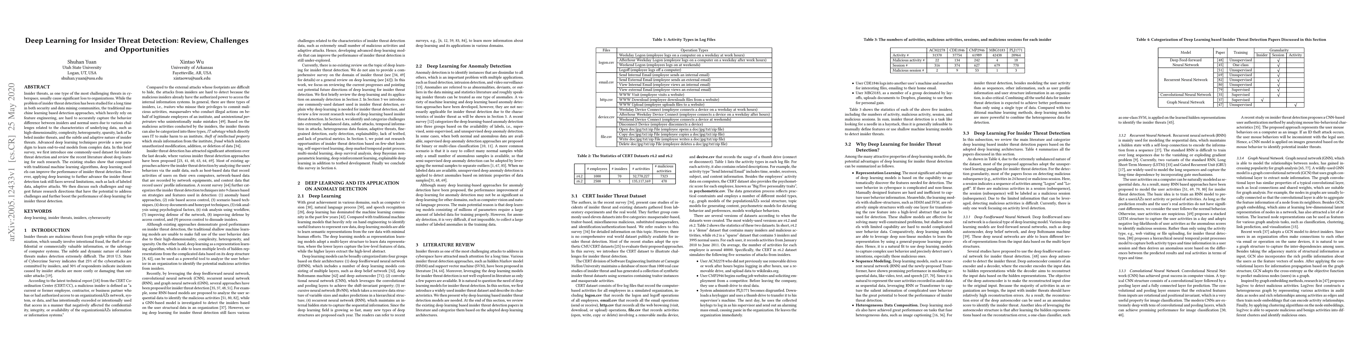 This paper reviews the application of deep learning for detecting insider threats, noting its potential over traditional machine learning due to its ability to model complex data. Despite improvements, challenges like limited labeled data and adaptive threats remain, prompting suggestions for future research directions to enhance detection performance.