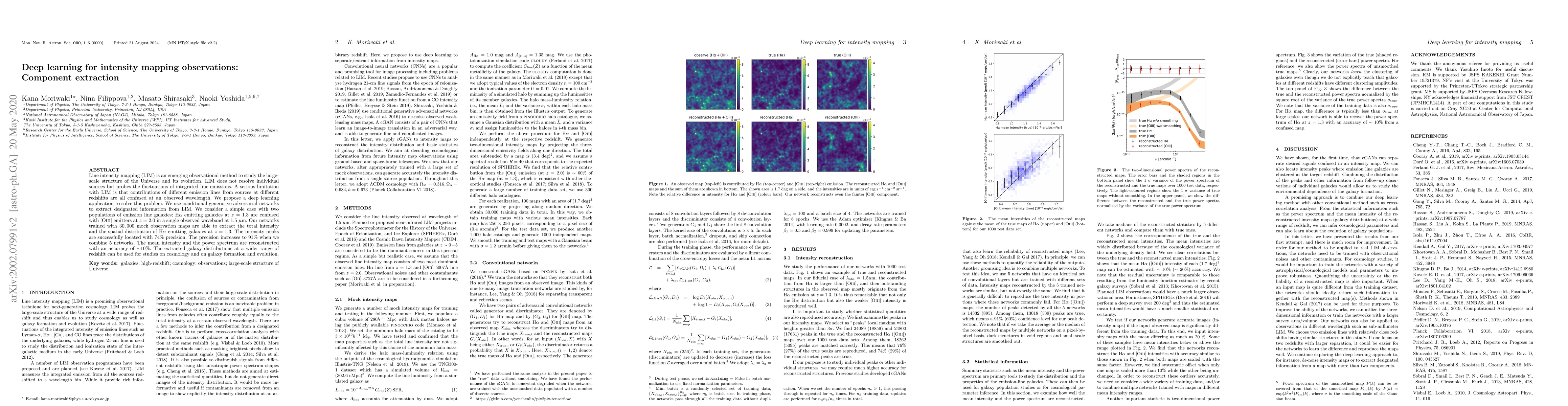 Line intensity mapping (LIM) is an emerging observational method to study the large-scale structure of the Universe and its evolution. LIM does not resolve individual sources but probes the fluctuations of integrated line emissions. A serious limitation with LIM is that contributions of different emission lines from sources at different redshifts are all confused at an observed wavelength. We propose a deep learning application to solve this problem. We use conditional generative adversarial networks to extract designated information from LIM. We consider a simple case with two populations of emission line galaxies; H$\rm\alpha$ emitting galaxies at $z = 1.3$ are confused with [OIII] emitters at $z = 2.0$ in a single observed waveband at 1.5 $\rm\mu$m. Our networks trained with 30,000 mock observation maps are able to extract the total intensity and the spatial distribution of H$\rm\alpha$ emitting galaxies at $z = 1.3$. The intensity peaks are successfully located with 74% precision. The precision increases to 91% when we combine the results of 5 networks. The mean intensity and the power spectrum are reconstructed with an accuracy of $\sim$10%. The extracted galaxy distributions at a wider range of redshift can be used for studies on cosmology and on galaxy formation and evolution.