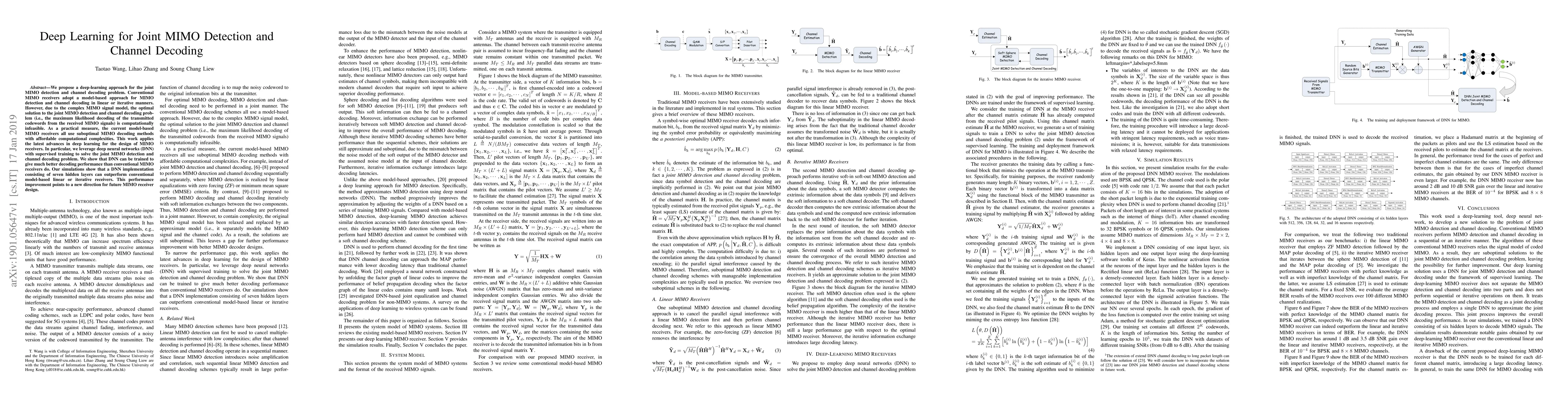 This paper proposes a deep-learning approach using deep neural networks (DNN) for joint MIMO detection and channel decoding, demonstrating superior performance over conventional model-based methods. Simulations show that a DNN with seven hidden layers outperforms linear or iterative receivers, indicating a promising new direction for MIMO receiver design.