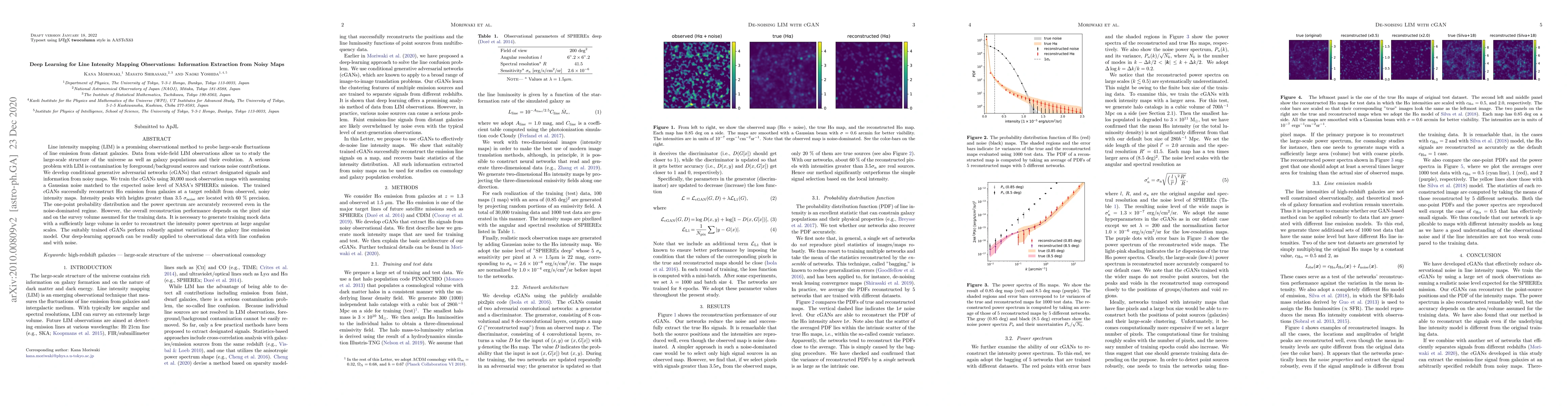 This paper develops conditional generative adversarial networks (cGANs) to extract signals from noisy line intensity maps, enabling the study of large-scale cosmic structures despite noise and foreground contamination. The cGANs are trained on mock data and successfully reconstruct H{\alpha} emission, demonstrating accurate recovery of intensity peaks and cosmological parameters even in noisy conditions.