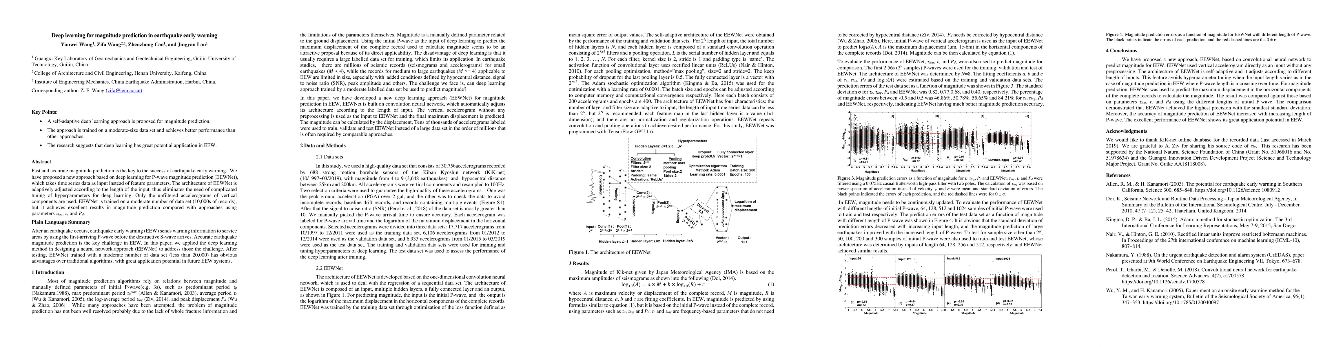 This paper proposes EEWNet, a deep learning model for P-wave magnitude prediction in earthquake early warning, using time series data directly without feature parameters. The adaptive architecture eliminates the need for hyperparameter tuning, achieving superior results compared to traditional methods.