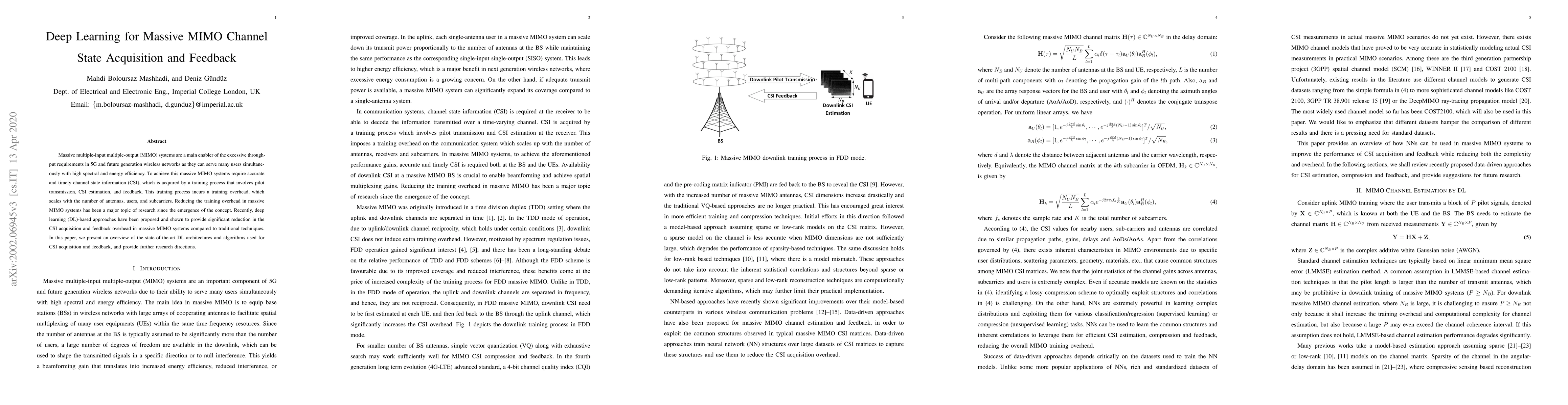 This paper reviews the application of deep learning techniques to reduce the training overhead in massive MIMO systems, focusing on how neural networks can enhance channel state information acquisition and feedback with lower complexity.