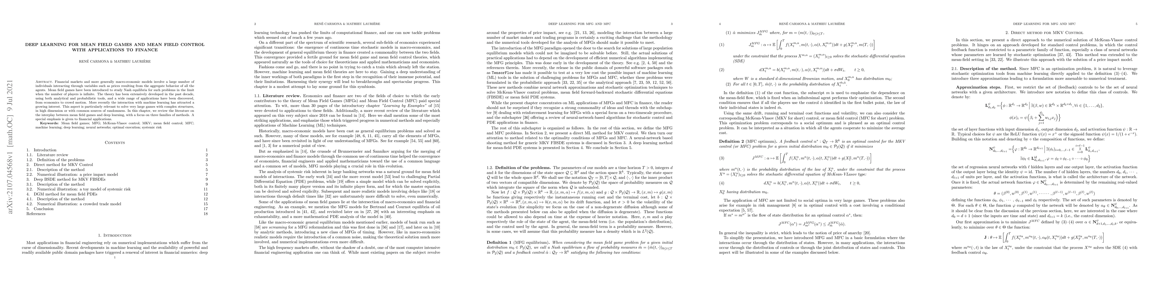 This paper reviews the integration of deep learning techniques with mean field games and control, focusing on their applications in finance, where large numbers of individuals interact through aggregate variables like prices. It highlights three families of methods and underscores the relevance of this approach for solving large, complex games.