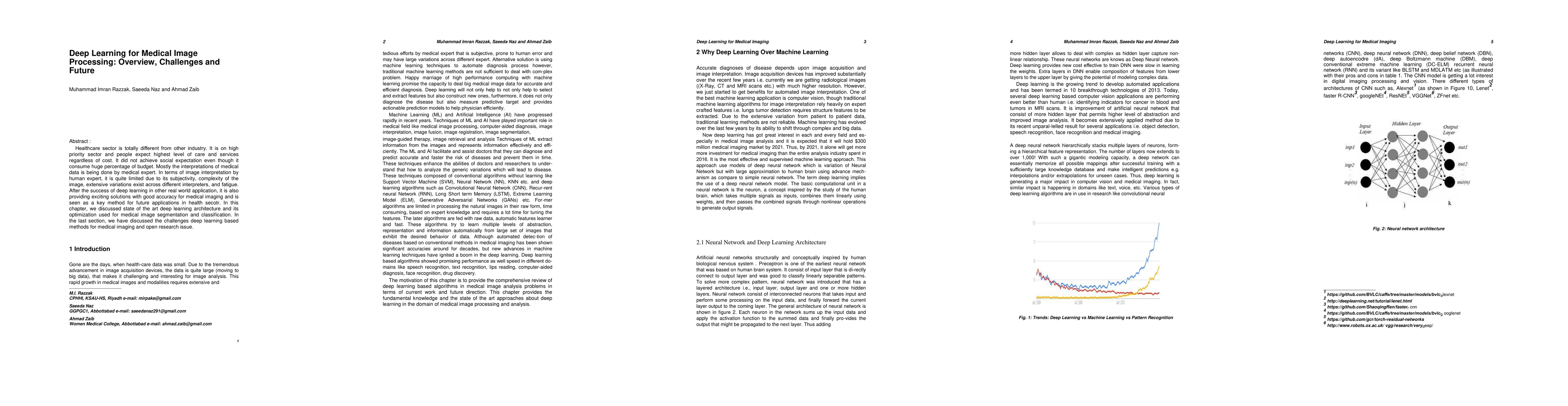 This paper reviews the application of deep learning in medical image processing, highlighting its potential to improve accuracy and efficiency over traditional human interpretation. It discusses current state-of-the-art architectures and optimization techniques, while also addressing the challenges and future research directions in the field.