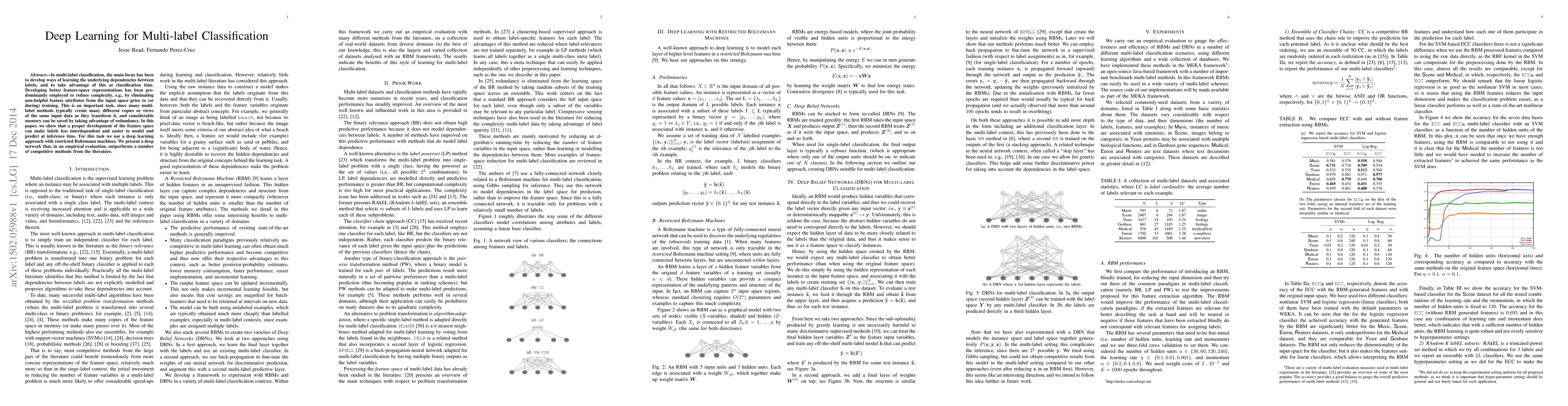 This paper explores deep learning for multi-label classification using restricted Boltzmann machines to develop better feature-space representations, reducing label interdependence and improving prediction efficiency. The proposed deep network outperforms existing methods in empirical evaluations.