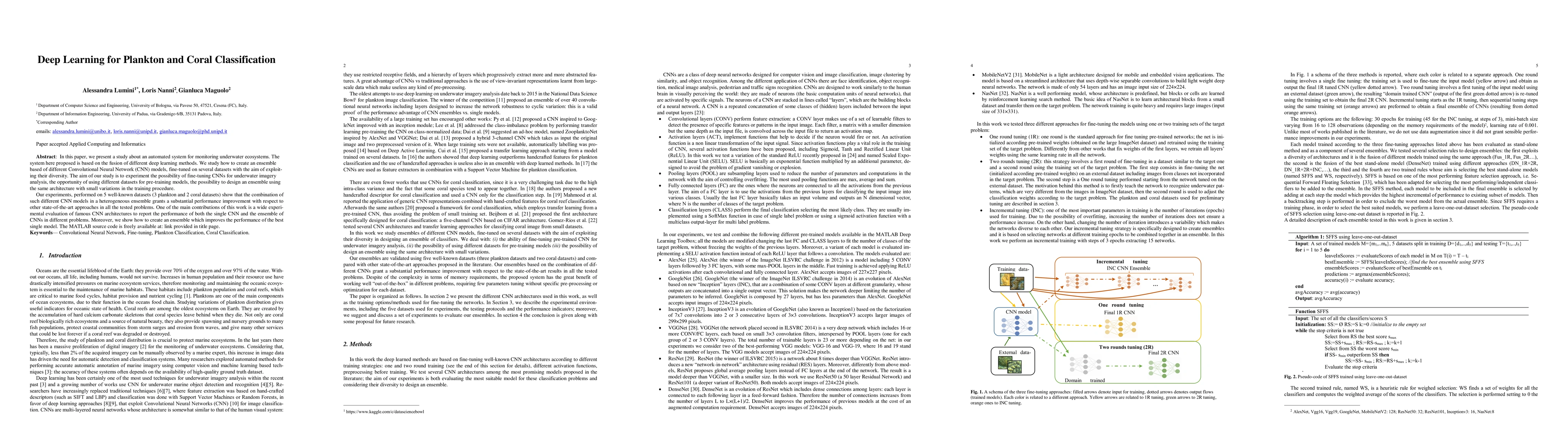 This paper presents a deep learning system that improves the accuracy of plankton and coral classification using a fusion of CNN models. The system outperforms other state-of-the-art approaches with substantial performance improvements.