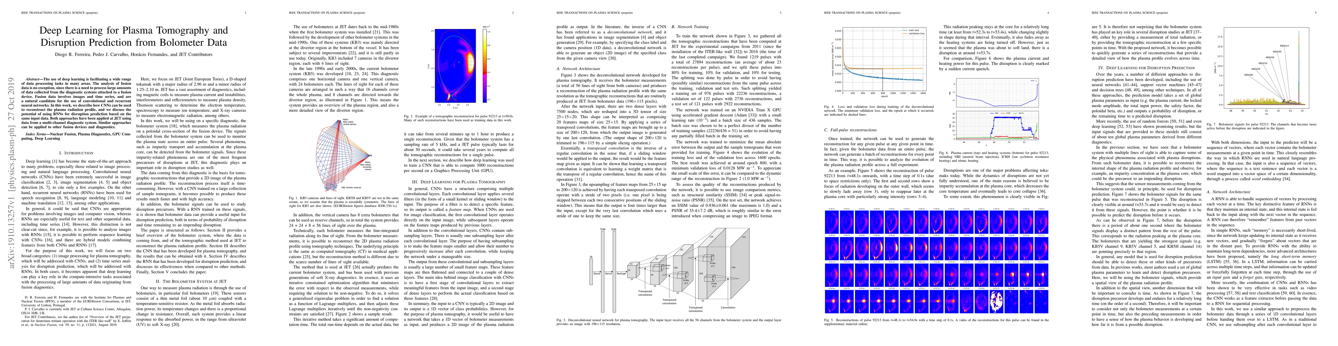 This paper explores the application of convolutional neural networks (CNNs) for reconstructing plasma radiation profiles and recurrent neural networks (RNNs) for predicting disruptions in fusion devices using bolometer data from JET. The methods demonstrate potential for broader application in fusion diagnostics.