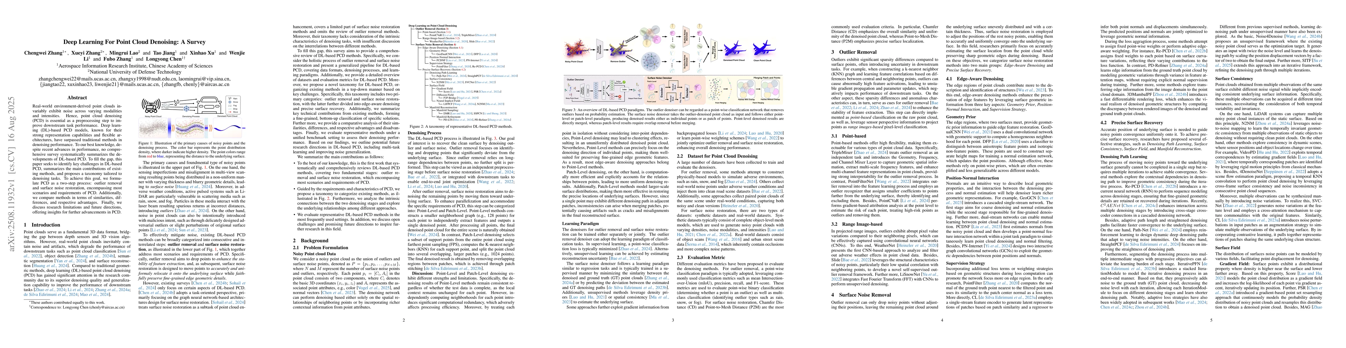 Real-world environment-derived point clouds invariably exhibit noise across varying modalities and intensities. Hence, point cloud denoising (PCD) is essential as a preprocessing step to improve downstream task performance. Deep learning (DL)-based PCD models, known for their strong representation capabilities and flexible architectures, have surpassed traditional methods in denoising performance. To our best knowledge, despite recent advances in performance, no comprehensive survey systematically summarizes the developments of DL-based PCD. To fill the gap, this paper seeks to identify key challenges in DL-based PCD, summarizes the main contributions of existing methods, and proposes a taxonomy tailored to denoising tasks. To achieve this goal, we formulate PCD as a two-step process: outlier removal and surface noise restoration, encompassing most scenarios and requirements of PCD. Additionally, we compare methods in terms of similarities, differences, and respective advantages. Finally, we discuss research limitations and future directions, offering insights for further advancements in PCD.