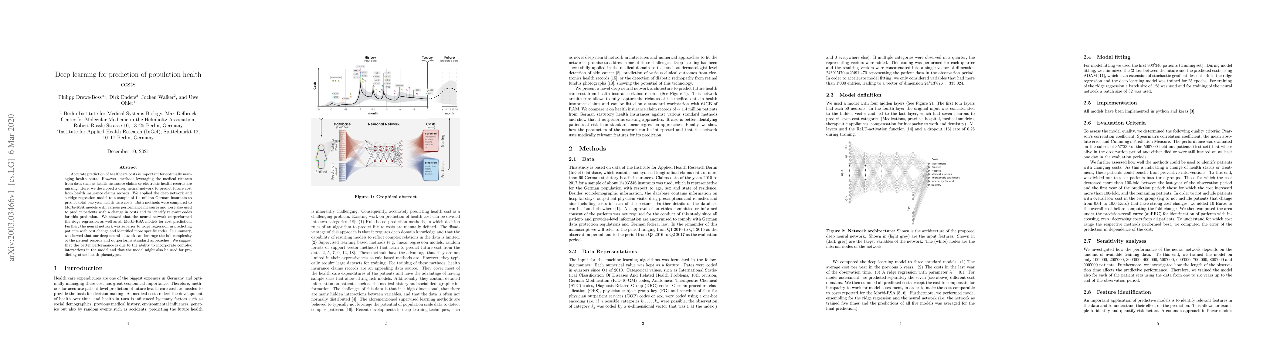 This research introduces a deep neural network that predicts healthcare costs using German insurance claims data, outperforming traditional methods like ridge regression and Morbi-RSA models. The neural network also excels in identifying patients with cost changes and specific relevant medical codes, demonstrating its ability to capture complex patient record interactions for improved health cost forecasting.