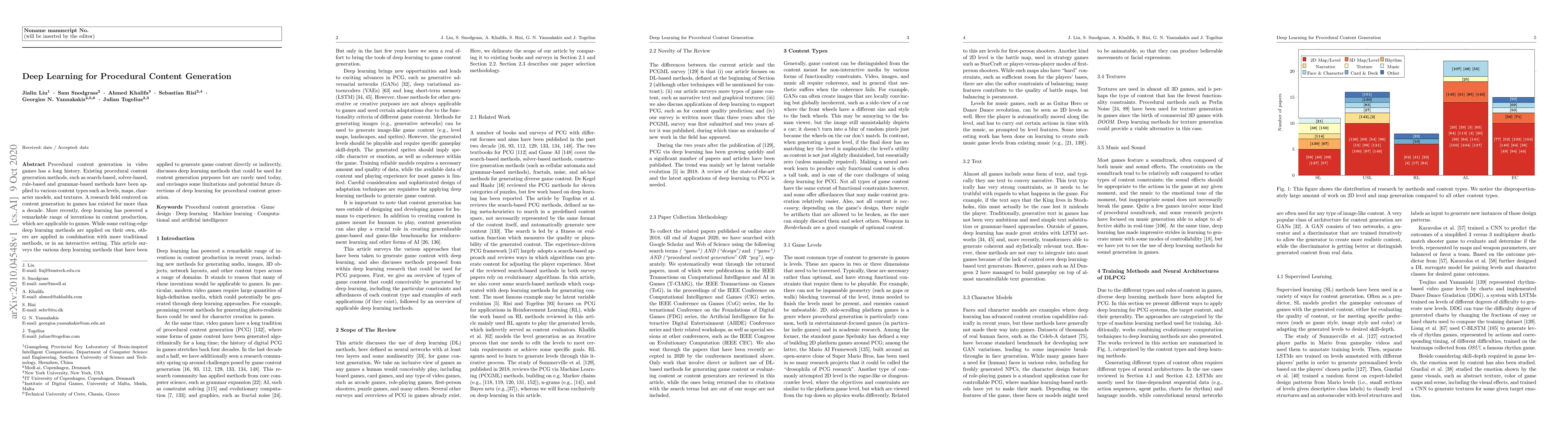 This paper surveys deep learning methods applied to procedural content generation in video games, highlighting both current applications and potential future directions. It also discusses limitations and underutilized deep learning techniques for this purpose.