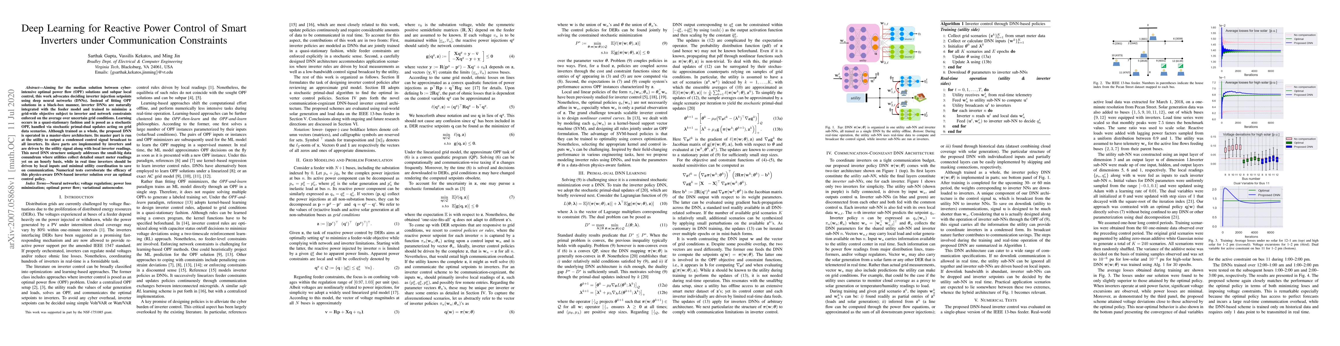 This paper proposes a deep neural network (DNN) approach for reactive power control in smart inverters under communication constraints, balancing between optimal power flow solutions and local control. The DNN is trained to minimize a grid-wide objective while respecting inverter and network constraints, and operates in a master-slave architecture to optimize communication and data usage.